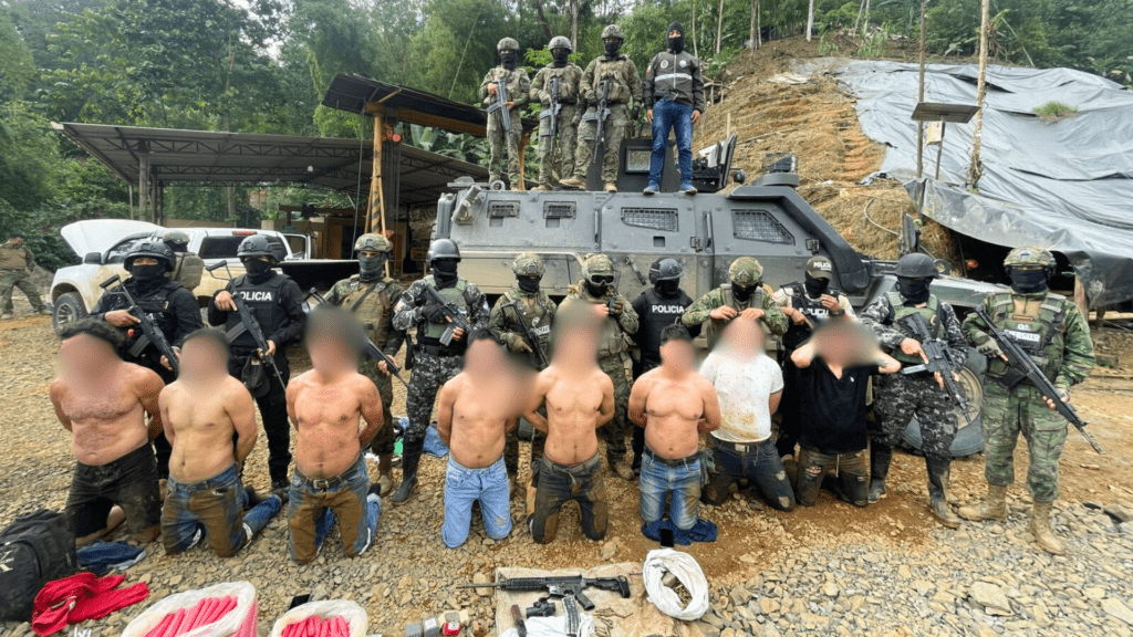 En un operativo militar llevado a cabo por las Fuerzas Armadas, aprehendieron a 11 personas y se decomisó un arsenal de armas, municiones y explosivos. El enfrentamiento tuvo lugar en el sector de la Independencia, en la mina La Tormenta, dentro del cantón Camilo Ponce Enríquez, en Azuay.
