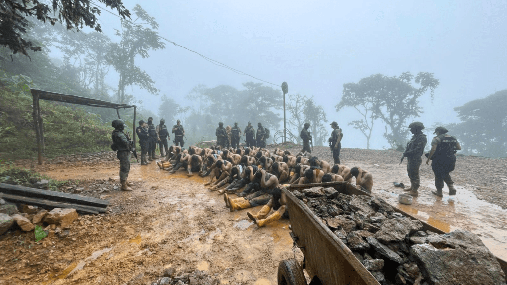 La madrugada de este miércoles 3 de julio, luego de una operación militar en la mina ‘Punto Dorado’ de Santa Martha, en el cantón azuayo Ponce Enríquez hallaron cinco personas asesinadas y liberaron a 49 obreros que estaba secuestradas.