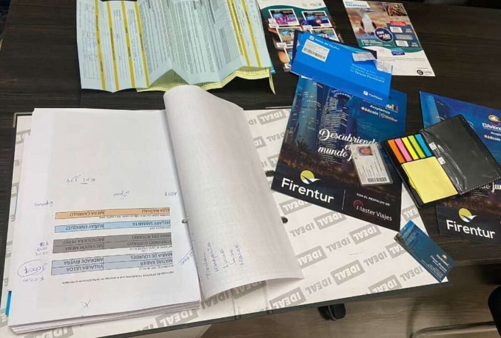 Agentes investigadores de la Fiscalía y Policía Nacional intervinieron las oficinas de una agencia de viajes en el norte de Quito.