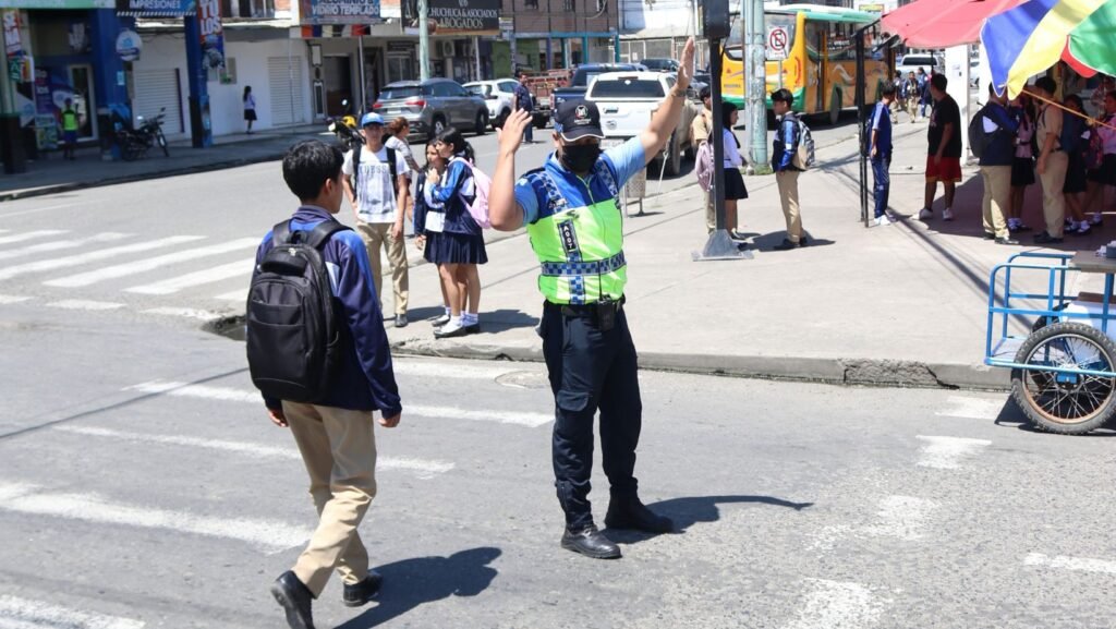 Alrededor de 50 agentes civiles de tránsito brindan seguridad vial en las instituciones educativas fiscales y particulares, como parte del plan operativo de retorno a clases. La actividad se coordinó con el personal administrativo de escuelas y colegios de Machala.