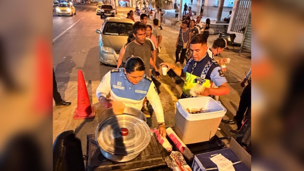 Un gesto de solidaridad protagonizaron agentes civiles de tránsito en la ciudad de Machala, al realizar una jornada de apoyo dirigida a familiares de pacientes que permanecen en los exteriores de casas de salud esperando noticias sobre el estado de sus seres queridos.