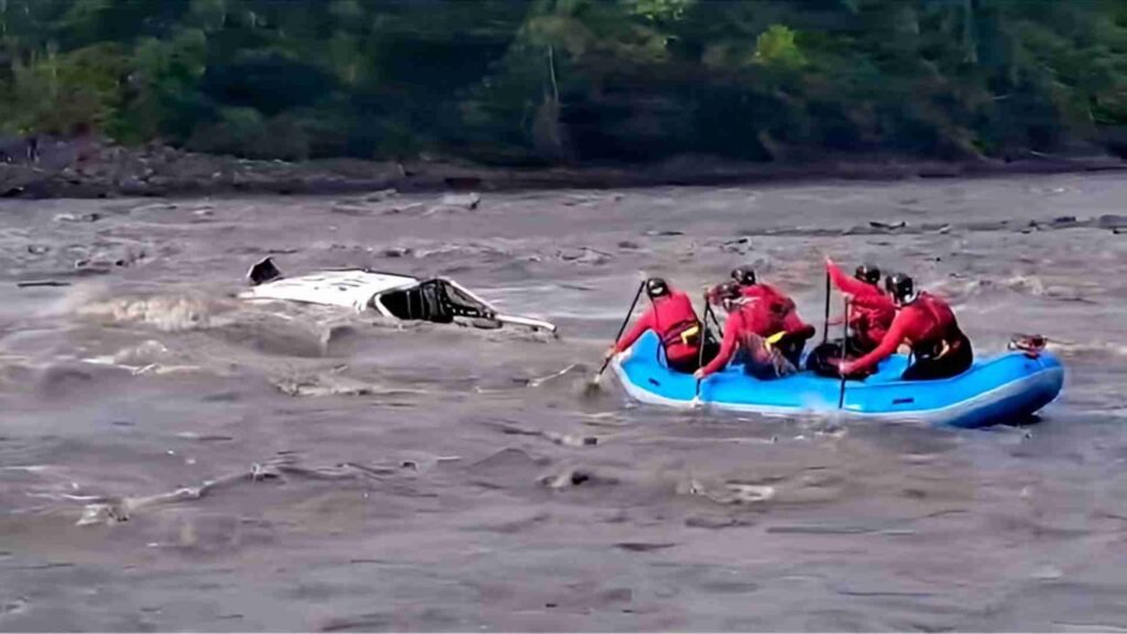 Enrique Delgado, alcalde de Sucúa, provincia de Morona Santiago, confirmó que la caída de una camioneta al río tras el colapso de un puente dejó a cinco víctimas mortales y aún hay dos personas desaparecidas hasta la mañana de este 24 de abril.
