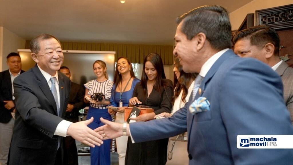 El alcalde de Machala, Darío Macas, tuvo un encuentro con Gao Zhenting, Cónsul General de la República Popular China, y la Vicecónsul, Yang Wenyi en Guayaquil. Durante la visita hablaron sobre comercio y cultura.