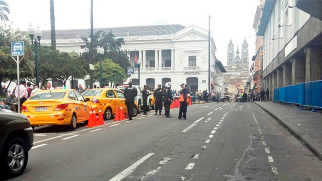 Se conoció que los uniformados rastrearon todo el perímetro externo de la Plaza de la Independencia, desde las calles Venezuela, Espejo, García Moreno y Benalcázar.