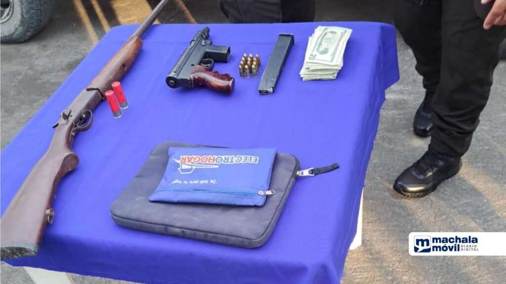 La noche del lunes 1 de abril, las Fuerzas Armadas informaron sobre la aprehensión de un hombre en el cantón Pasaje, tras registrarlo y encontrar armas, municiones y $3.408 en efectivo en su posesión.