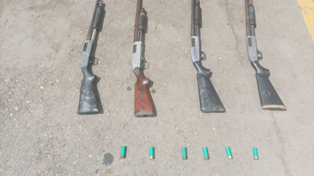 Seis cartuchos (municiones) y cuatro carabina mossberg (arma tipo escopeta) fue lo que se decomisó mientras se ejecutó el operativo CAMEX en la concesión minera del cantón Zaruma en la provincia de El Oro.