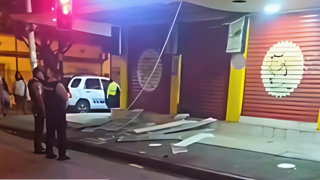 Según el reporte de los moradores, la detonación fue tan potente que sacudió viviendas aledañas y provocó daños considerables en el local afectado: el techo terminó parcialmente destruido y una de las puertas metálicas quedó visiblemente deformada. A pesar del impacto, no se registraron víctimas ni heridos.