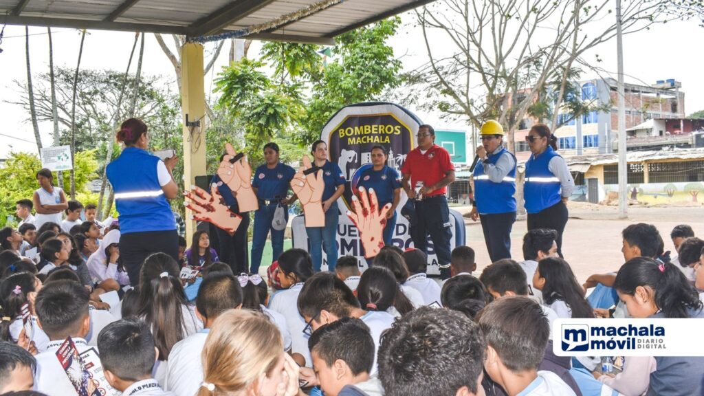 El Cuerpo de Bomberos Municipal de Machala sigue con el proceso de charlas en las escuelas y colegios de la ciudad, llevando el mensaje del peligro que representa la utilización de pirotecnia y materiales explosivos, principalmente en navidad y fin de año.