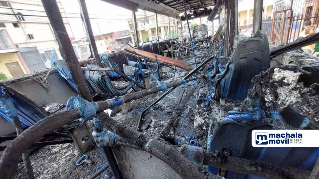 Un bus de la línea 137 quedó destruido por las llamas la mañana de este lunes 14 de agosto en las calles Tungurahua y Francisco de Marcos, en el centro sur de Guayaquil.