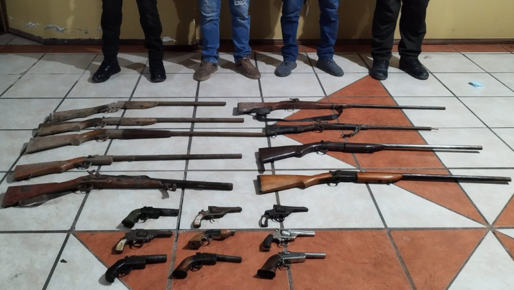 El allanamiento del domicilio permitió la incautación de 29 armas de fuego, lo que significa un fuerte golpe para los grupos de delincuencia que actúa en varios frentes.