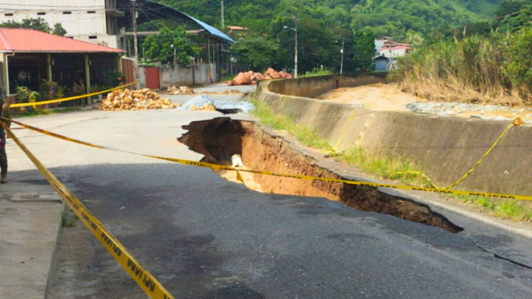 Las intensas lluvias registradas la noche del 16 y la madrugada del 17 de marzo de 2026 encendieron las alertas en Portovelo, donde nuevos hundimientos y grietas de gran magnitud afectan al casco urbano. El sector más comprometido es la calle Quebrada del Banco, en la intersección de las ciudadelas 28 de Noviembre y El Obrero, donde el terreno presenta fracturas visibles que se han extendido de forma alarmante hacia la calle Assad Bucaram, según reportes difundidos por la emisora