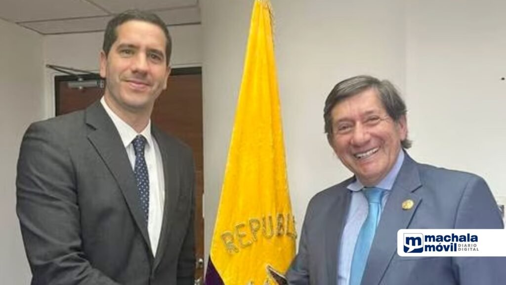César Rohon, actual ministro de Transporte y Obras Públicas, recibió este lunes 30 de octubre a Roberto Luque, designado por Daniel Noboa para que esté al mando de esa cartera de Estado, para dar inicio al proceso de transición en el Ministerio.