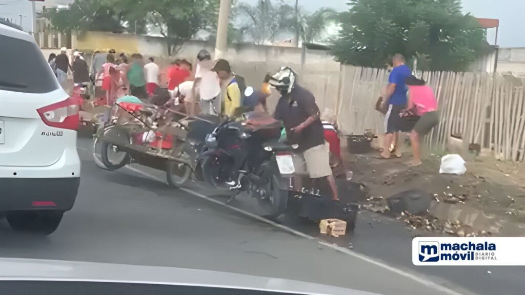 Producto de un daño en una de sus puertas las cervezas quedaron regadas en la vía lo que provocó que quienes circulaban por el sector empiecen a tomar el producto y llevárselo. En un video se puede observar cómo se llevan las jabas.