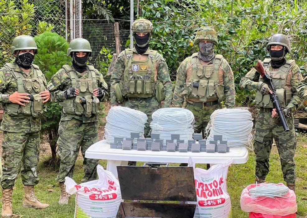 En la mina decomisaron dos sacos de nitrato de amonio, 13.335 cápsulas ordinarias, 729 metros de cordón detonante armado y 3.000 metros de cordón detonante.