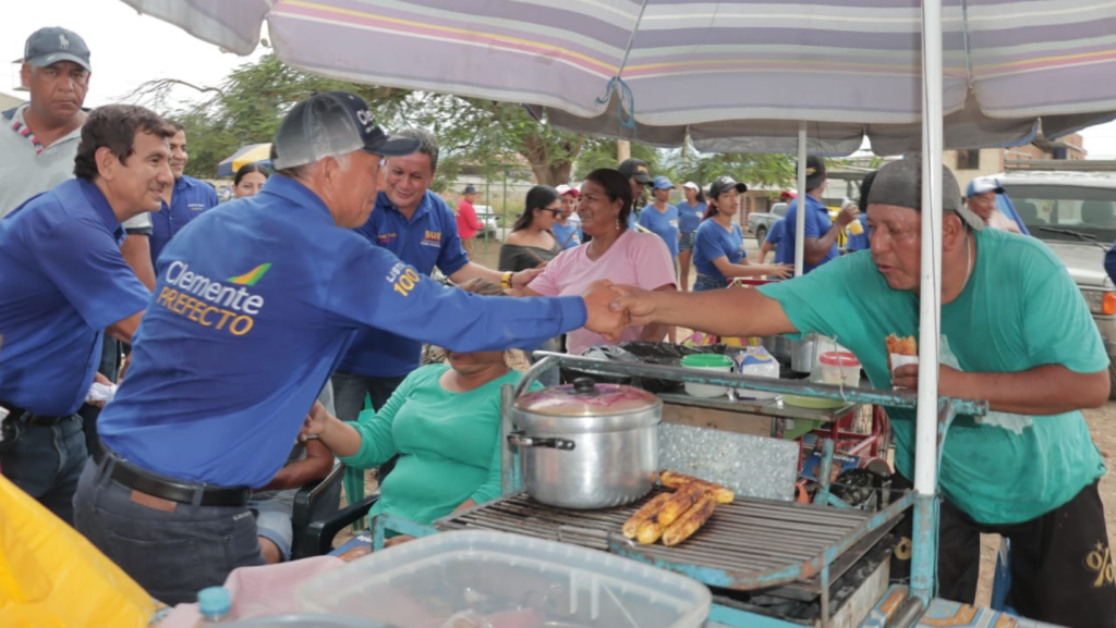 El candidato a la Prefectura de El Oro, Clemente Bravo y su binomio, Karina Torres, por el movimiento político Sur Unido Regional, lista 100, recorrieron la mañana de este jueves 19 de enero varios barrios del Sur de Machala, como las calles Circunvalación Sur y Rodolfo Veintimilla; barrios Brisas del Mar y San Jacinto, calle Palmeras y General Serrano, llegando hasta la calle Rocafuerte (centro de la ciudad), encontrándose allí con su candidato de la alianza a la Alcaldía, Carlos Falquez Batallas, del Partido Social Cristiano, lista 6.