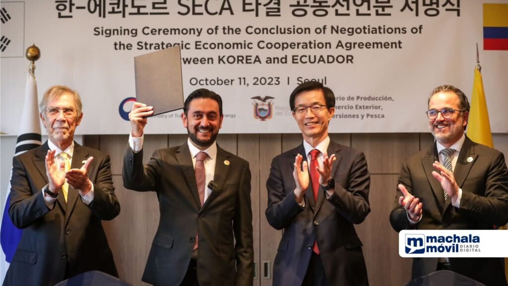 Los ministerios de comercio de Ecuador y Corea del Sur concretaron el martes, 10 de octubre, la prefirma del acuerdo comercial como antesala a la plena ratificación del convenio de intercambio comercial; el evento se llevó a cabo el martes 10 de octubre en Seúl, Corea del Sur.