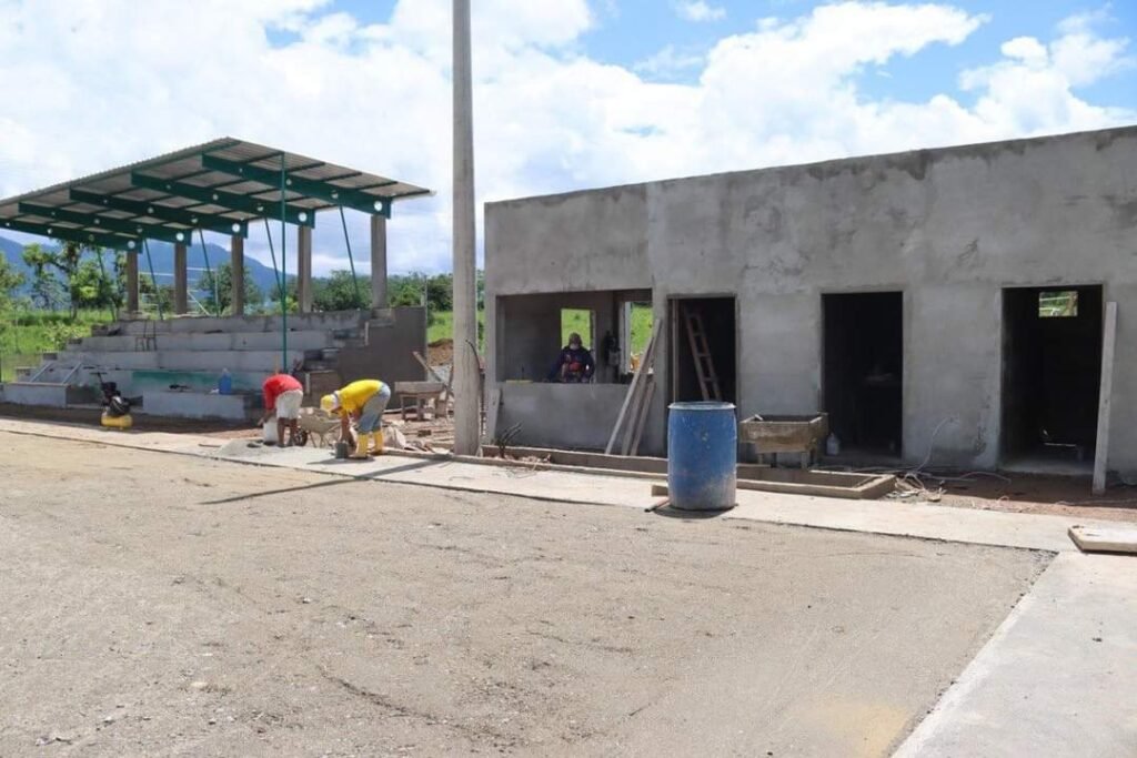 La obra deportiva que se está construyendo en el sitio La Chilca, en Santa Rosa, y forma parte del proyecto «Vive la vida sin dorgas» impaulsado por el alcale Larry Vite inició en diciembre del año pasado con un plazo de 120 días, contempla la construcción de una cancha de fútbol 7 con grama sintética, graderías con techado, área de bar, boletería, camerinos, baterías sanitarias, además de un área recreativa, jardineras, instalaciones eléctricas y sanitarias.