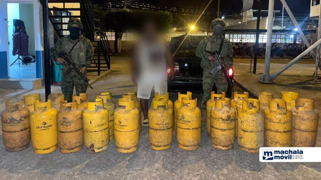 Un total de 22 bombonas de gas fueron decomisadas de un vehículo que circulaba por una carretera de la parroquia La Avanzada, en el cantón Santa Rosa.