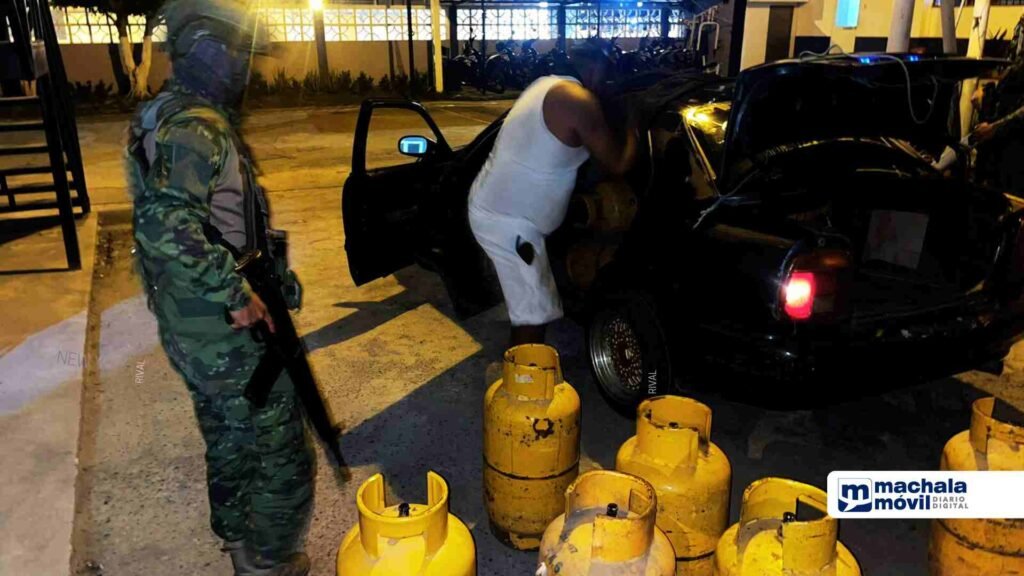 En una operación militar de control de armas, municiones y explosivos (CAMEX) llevada a cabo en la parroquia La Avanzada del cantón Santa Rosa, se detuvo la marcha de un vehículo de la marca Chevrolet, en cuyo interior llevaban 22 ciclindros de gas presuntamente para el contrabando.