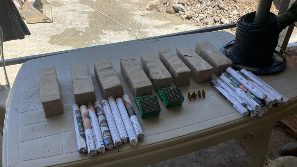 Los materiales decomisados fueron: 20 sacos de nitrato de amonio, 170 tacos de nitrato de amonio, 100 metros de cordón detonante, 4200 cápsulas ordinarias y 9 municiones calibre 9mm.