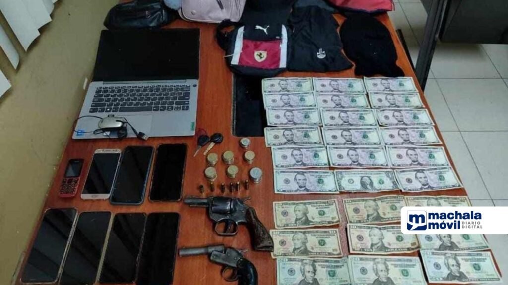 Estos individuos al notar la presencia policial comenzaron su plan de huída, es ahí que en coordinación con la policía del cantón Piñas lograron interceptar a los sujetos encontrando en su poder armas de fuego y todos los accesorios robados