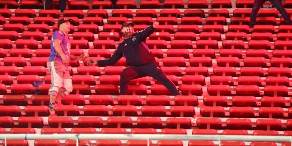 La voz del estadio pidió formalmente que los hinchas de Universidad de Chile abandonaran el estadio. Algunos lograron escapar, pero un grupo fue alcanzado por barristas de Independiente de Avellaneda, quienes subieron a la parte de arriba de la general para agredirlos físicamente.