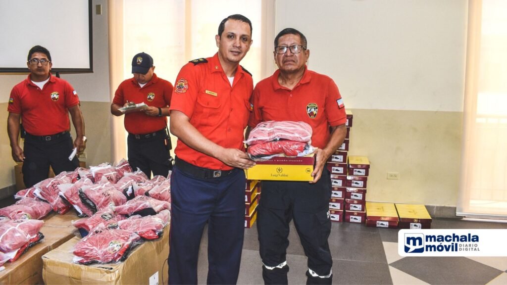 Con la presencia del personal operativo y administrativo de la institución bomberil, Javier Astudillo Gómez, primer jefe; y Pablo Bastidas Vargas, subjefe, se realizó la entrega de los nuevos uniformes para los funcionarios del Cuerpo de Bomberos Municipal de Machala.
