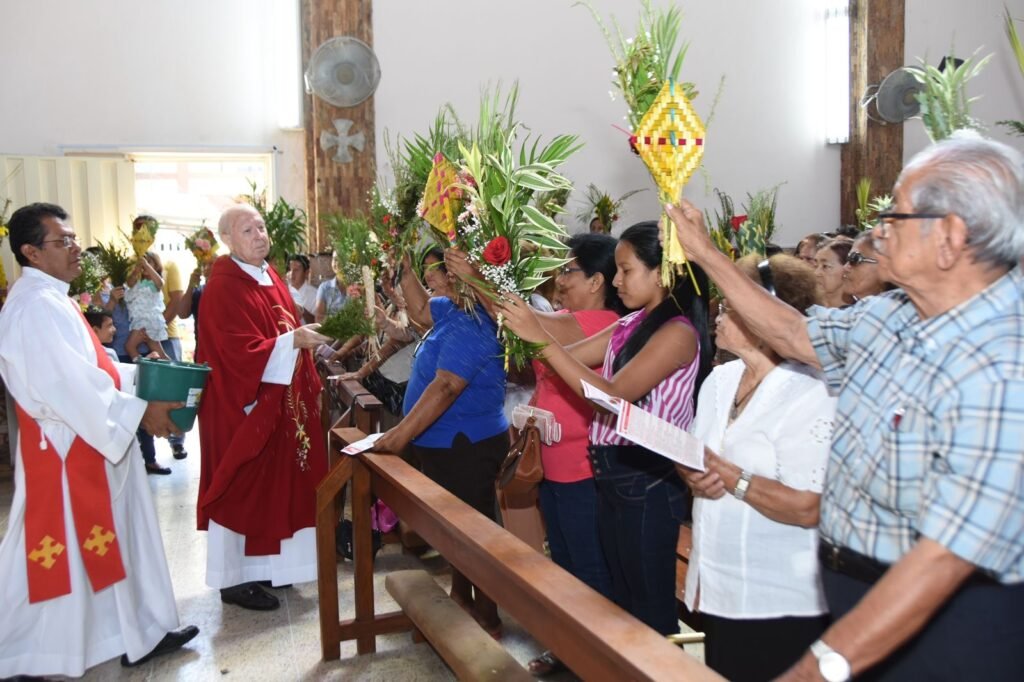 La primera misa se realizará a las 07:00 y solo en este horario se va a realizar una pequeña procesión con los ramos para posteriormente bendecirlos.