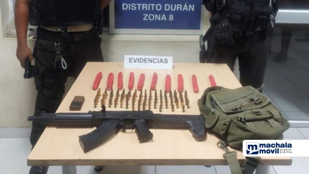 Material bélico fue hallado enterrado en el cerro Las Cabras, en Durán, durante un operativo policial. La acción se realizó a las 20:30 del domingo 28 de mayo de 2023.