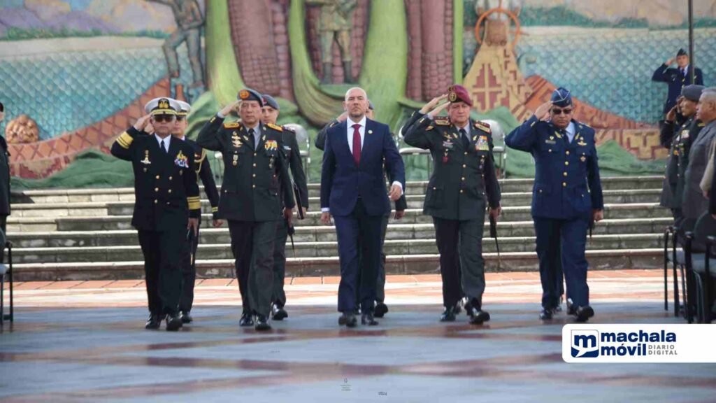 Durante una ceremonia en el Campo de Marte del complejo ministerial, ubicado en el centro de Quito, el titular de esa cartera de Estado presentó su saludo a militares de la Fuerza Terrestre, Naval y Aérea.