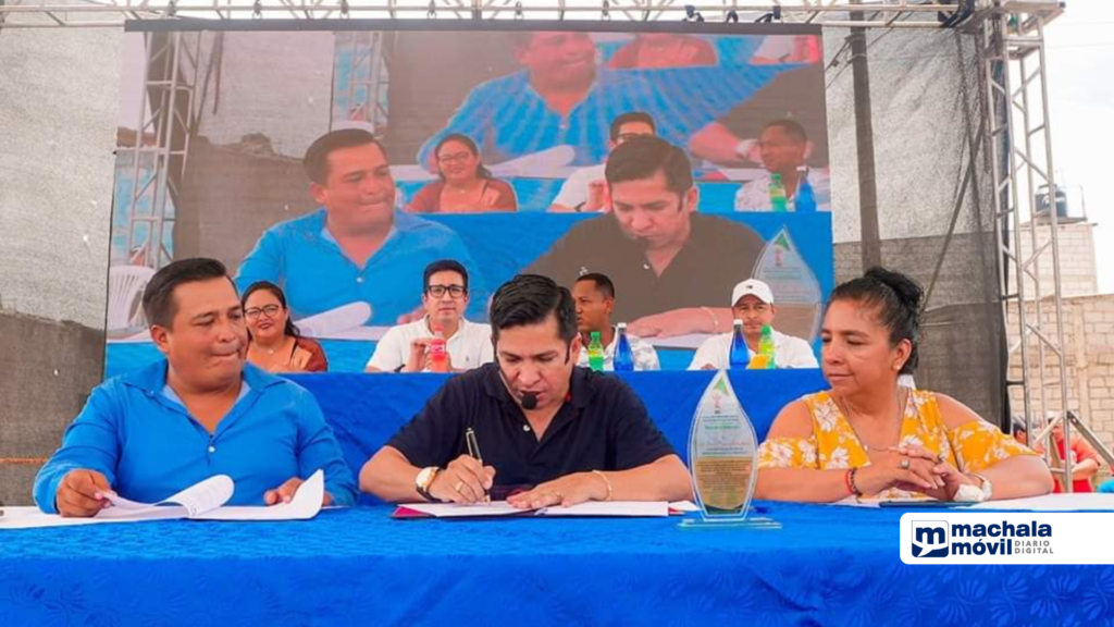 El alcalde Darío Macas llevó a cabo la firma del contrato para la construcción de una red vial destinada al recorrido de buses en los barrios Federico Páez y Washington García.