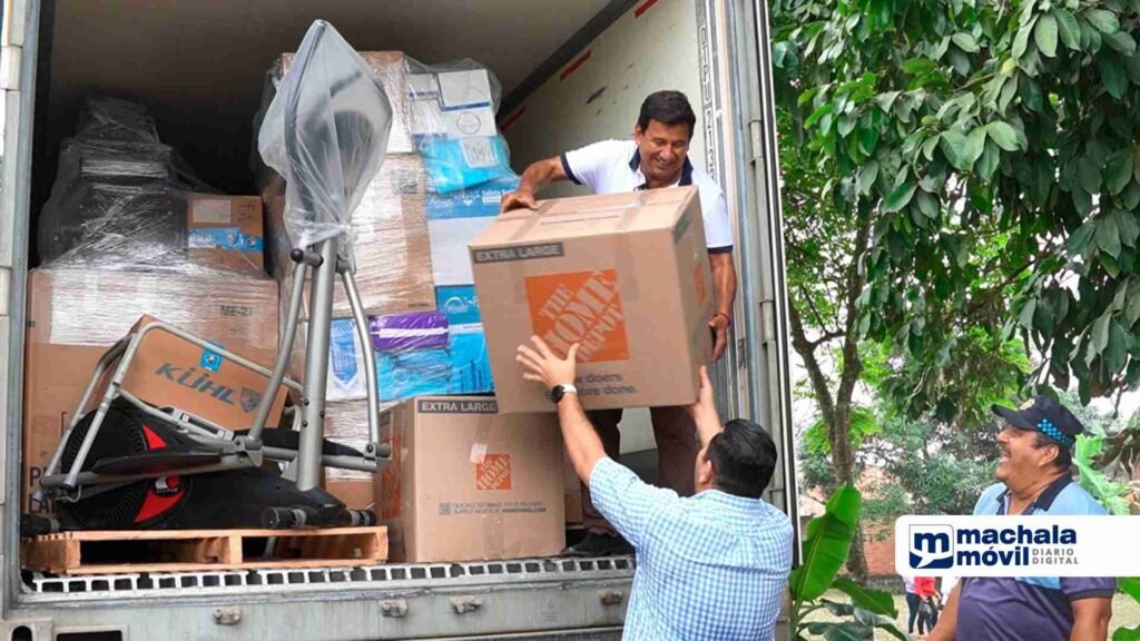 El alcalde de Pasaje, Jovanny Coronel Castillo recibió un contenedor con asistencia humanitaria donada por la Fundación Charity Anywhere de Utah EEUU.