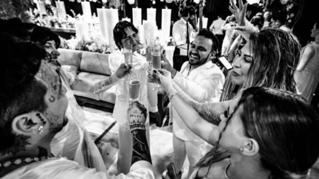 Lo que captó la atención de sus seguidores, fue dos de los momentos que aparecen en la recopilación. Una fotografía donde está Cazzu junto a Nodal y su familia, celebrando con champaña; y un clip, donde la rapera aparece en el fondo haciendo una mueca graciosa.