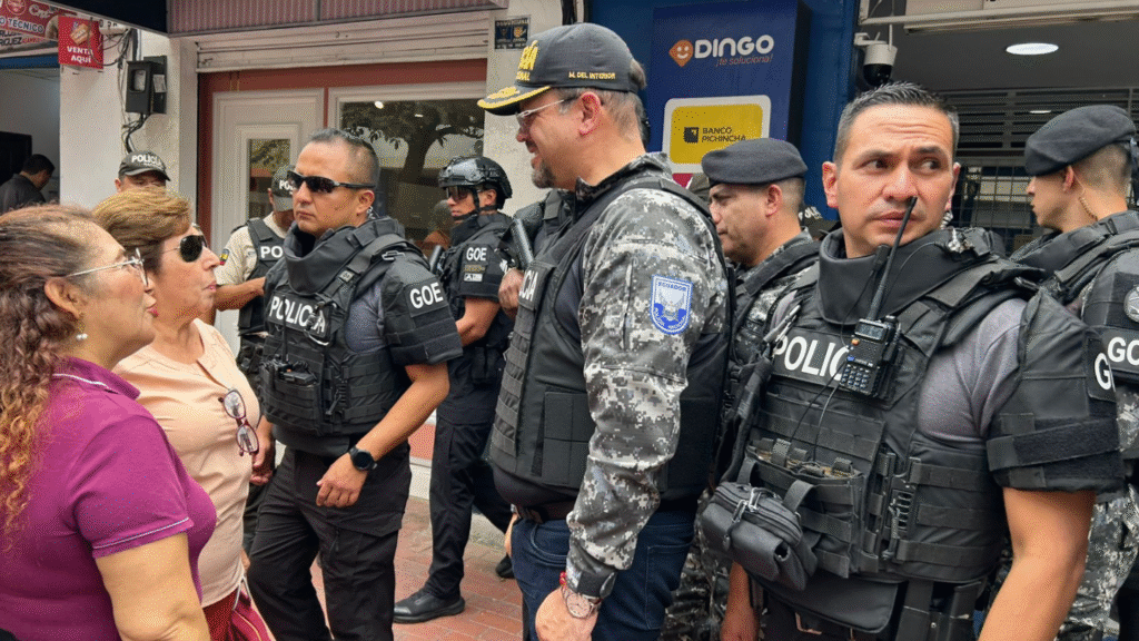 El ministro del Interior, John Reimberg, recorrió el martes 7 de octubre el centro de Machala para presentar oficialmente la nueva estrategia de vigilancia “Proximidad Comunitaria – QR”, un innovador sistema que busca fortalecer la seguridad ciudadana mediante el uso de tecnología y la interacción directa entre policías y comunidad.