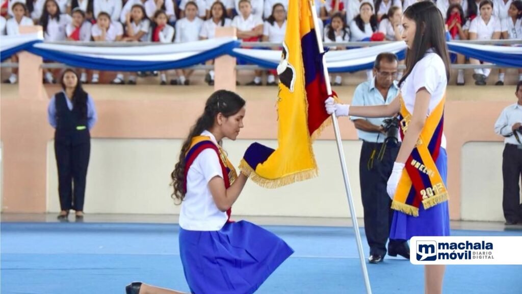 En esta ocasión, las autoridades de Educación estarán en un magno evento a partir de las 14:00 de este martes 26 de septiembre en la unidad educativa Ciudad de Machala para acompañar a los estudiantes que juren la Bandera del Ecuador.