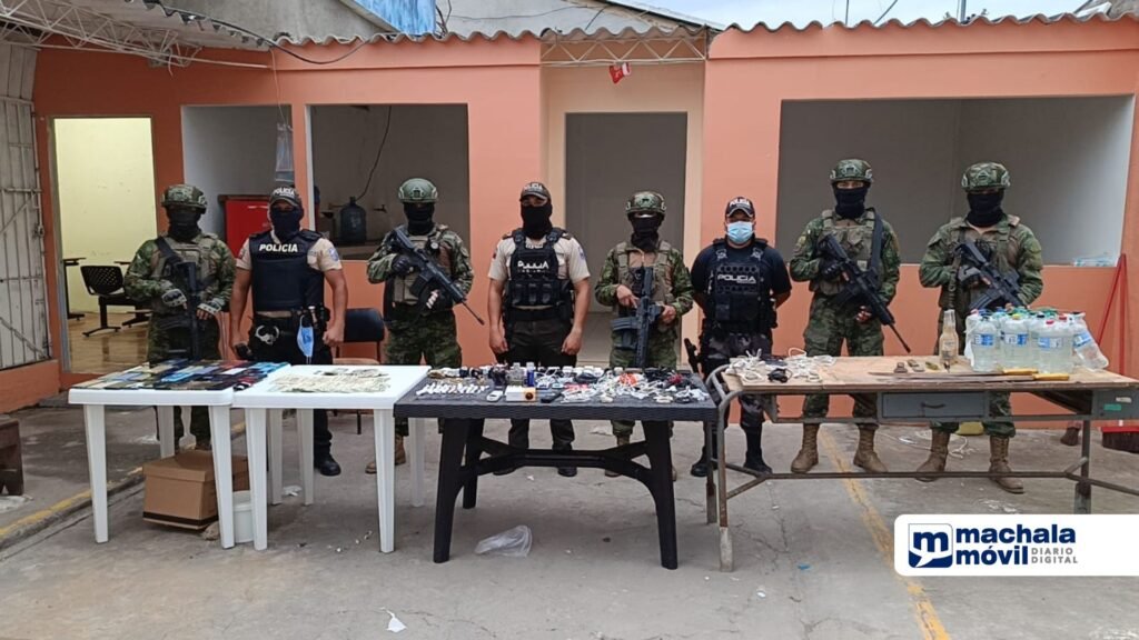 “Por información de inteligencia militar se volvió a realizar una requisa en los pabellones de mediana y máxima seguridad del Centro de Privación de Libertad N.°1 El Oro, encontrando varias caletas ocultas en las paredes, suelo, techo y bodegas”, indicaron las Fuerzas Armadas.