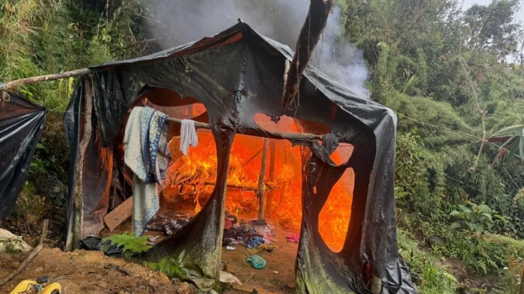 El Ministerio de Defensa informó que las operaciones militares continuarán en la zona con el objetivo de erradicar la minería ilegal y proteger los ecosistemas de esta reserva natural, considerada clave para la conservación ambiental del país.