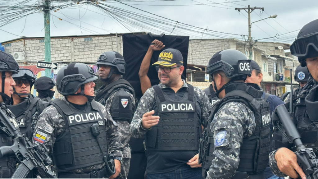 Este jueves 14 de agosto de 2025, el ministro del Interior, John Reimberg, junto al comandante General de la Policía Nacional, GraS. Pablo Dávila, ejecutaron el Operativo Apolo 6 en los sectores de Puerto Bolívar, Las Katyas, Wilson Franco, Nuevo Pilo y Cristo del Consuelo, donde se realizaron 25 allanamientos.