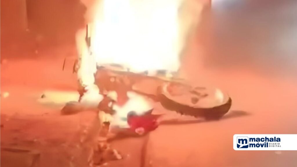 Una turba enardecida de ciudadanos incineraron una moto utilizada por presuntos asaltantes que perpetraron un robo en el este de Machala.