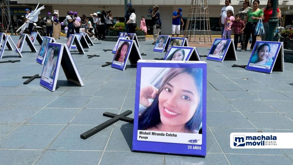 En el parque Juan Montalvo, donde terminó el recorrido, las manifestantes colocaron varias fotografías de mujeres que fueron asesinadas por sus parejas. También realizaron un minuto de silencio en memoria de todas las víctimas de la violencia de género.