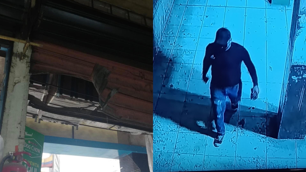 Cámaras de seguridad registraron cuando sujetos se acercaron a la puerta del negocio, encendieron un taco de dinamita y huyeron con rumbo desconocido.