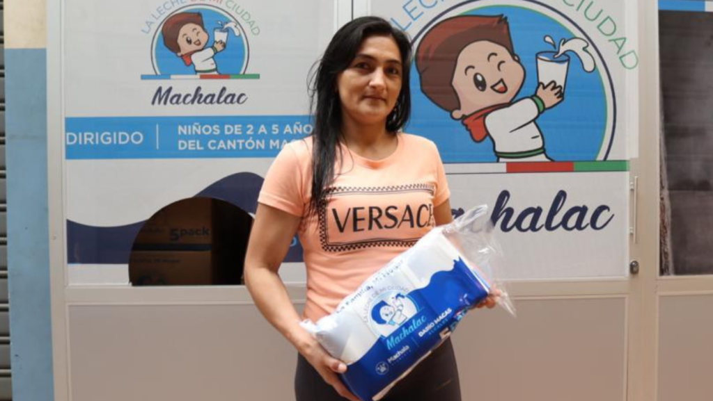 Niños machaleños continúan beneficiándose con ‘MachaLac, la leche de mi ciudad’, un proyecto social municipal que tiene el objetivo de combatir la desnutrición infantil en la capital orense mediante el consumo de leche líquida.