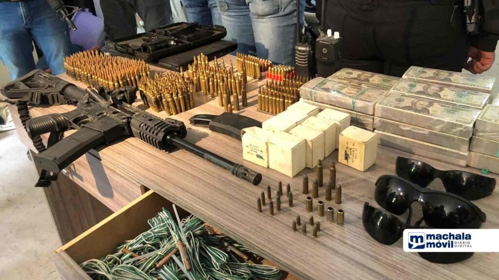 Con armas largas y cortas, municiones, fajos de dinero y entre otros objetos prohibidos fueron aprehendidos nuevos sujetos presuntos integrantes de una banda delictiva tras perpetrarse un enfrentamiento con efectivos militares en Tambillo, sur de Quito.