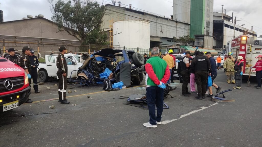 El siniestro se registró alrededor de las 05:40, cuando una camioneta de doble cabina y un vehículo tipo Vitara colisionaron de manera frontal. Según los primeros reportes de las autoridades de tránsito, uno de los automotores habría invadido el carril contrario, provocando el impacto.