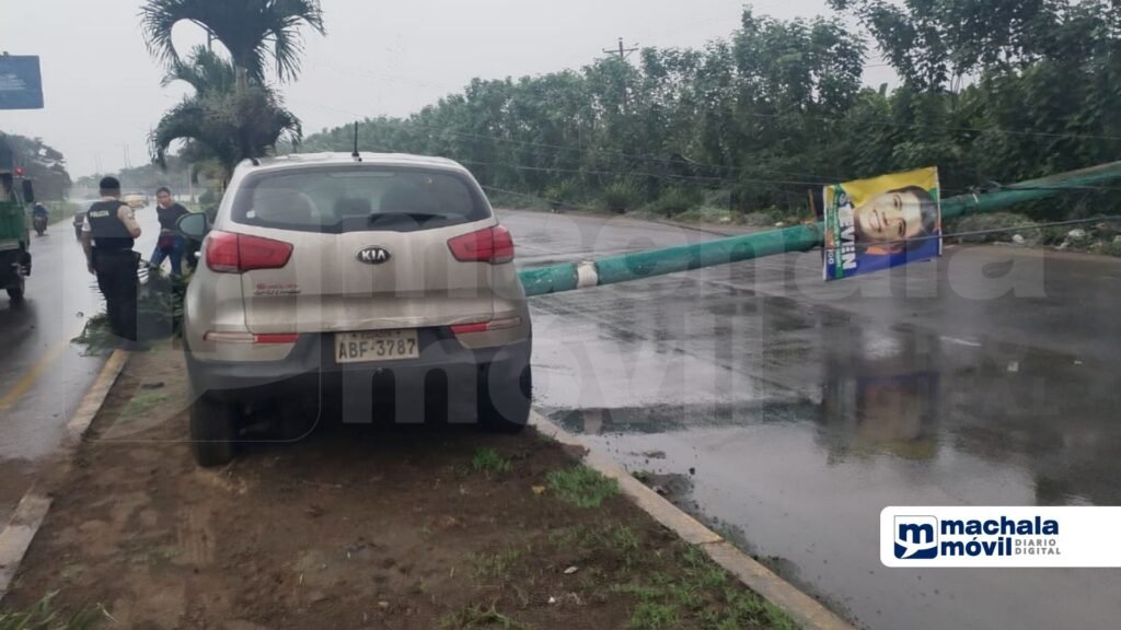 Producto de ello, el conductor terminó estrellándose contra un poste de energía eléctrica, mismo que terminó sobre la calzada.