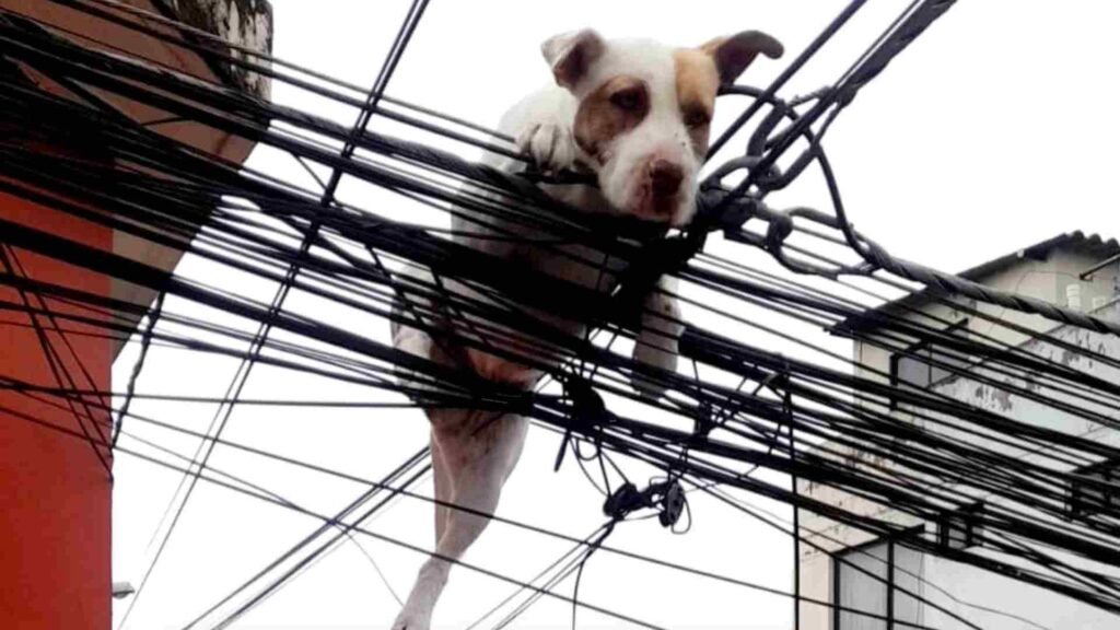 Afortunadamente, el perro quedó atrapado entre la maraña de cables, a una altura aproximada de unos cuatro metros. Sus dueños, al presenciar la escena, alertaron inmediatamente al Cuerpo de Bomberos Quito.