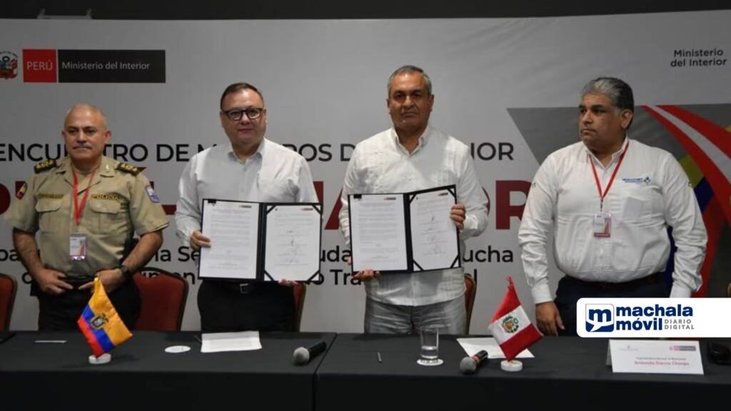 Los ministros del Interior de Perú y Ecuador, Vicente Romero y Juan Zapata Silva respectivamente, se reunieron este jueves en la ciudad de Tumbes, donde firmaron un convenio para fortalecer la seguridad ciudadana, potenciar el control en la zona común de frontera y luchar contra el crimen transnacional.