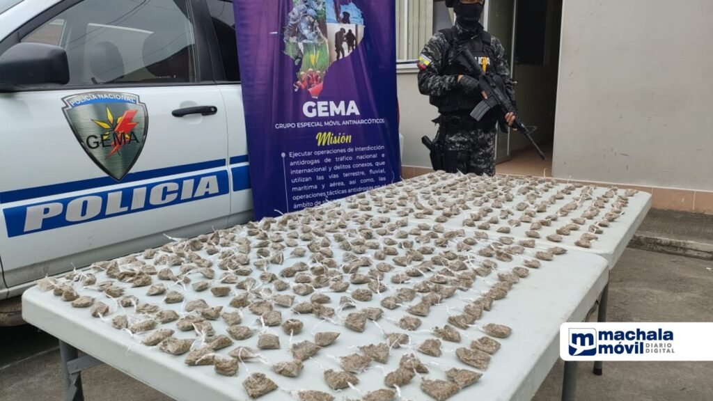 Tras realizar la revisión de la mochila, los uniformados hallaron dos bolsas plásticas y en su interior habían paquetes con una sustancia vegetal verde, presuntamente marihuana.
