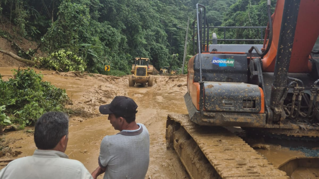 La mañana de este viernes 13 de marzo se rehabilitó el paso vehicular en el sector Las Bateas, en el cantón Piñas, luego de que un derrumbe de gran magnitud ocurrido la noche del miércoles provocara el cierre de la vía.