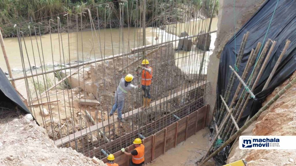 El Gobierno Provincial de El Oro ejecuta trabajos de reconstrucción en el muro lateral del puente sobre el río Caluguro, en Santa Rosa, con el objetivo de fortalecer la estructura de hormigón que enlaza a la Benemérita con la parroquia Bellamaría.